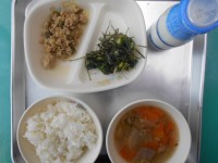 ごはん ぎゅうにゅう とりそぼろ ほうれんそうのいそあえ のっぺいじる エネルギー550kcal ほうれん草はミネラル、ビタミン類が豊富に含まれる緑黄色野菜です。旬の冬に露地栽培で育ったほうれん草...