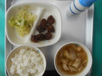 ごはん ぎゅうにゅう くじらのたつたあげ たくあんあえ すいとん エネルギー594kcal たくあんは日光と寒風で乾燥させた大根を、塩と米ぬかに漬け込んで発酵させた漬物です。パリパリとした食感が特...