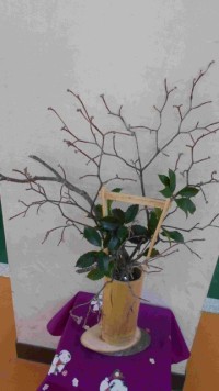 千利休が、安土桃山時代に作ったと伝えられる「竹尺八花入 銘一曲」に、勝るとも劣らぬ銘品です。地域の方が、学校にプレゼントしてくださいました。竹は、神社のノボリに使われていた物をリサイクルしたそうです...