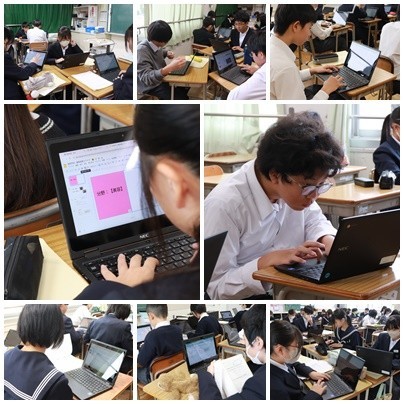 本日は、先週の職場体験のまとめを行いました。クロムブックのスライドを使って、体験した内容や学んだことなどをまとめています。