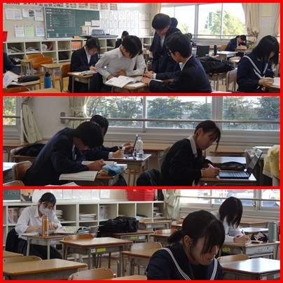 来週月曜日にある5教科テストや、12・13日に行われる4科テストに向けて、「一人学び(Self Study)」を黙々としていました。