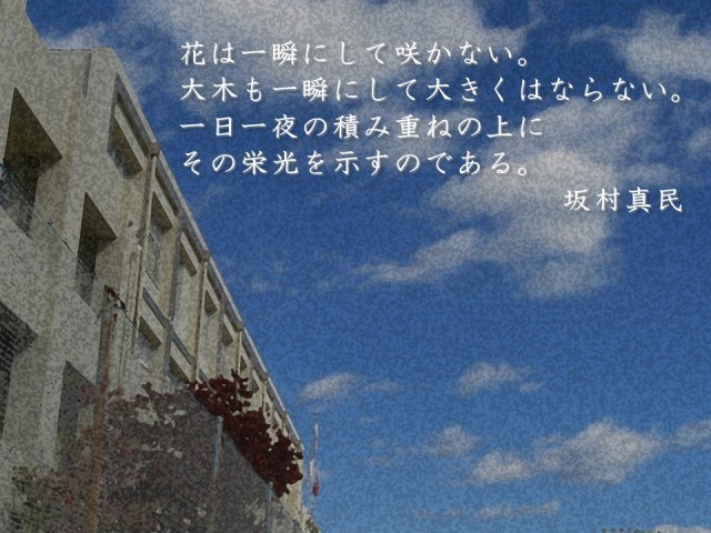坂村真民:(さかむら しんみん 1909〜2006)詩人。「癒しの詩人」と評される人物で、分かりやすい作品が多く、その作品は、小学生から財界人にまで多くの人に愛されている。