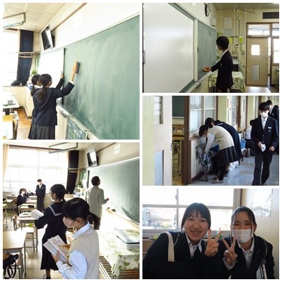 配布物を教室に運んだり、配る人、窓やカーテンをを閉める人、黒板を消す人、雑巾を綺麗に戻せる人・・・。