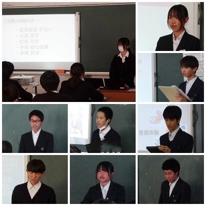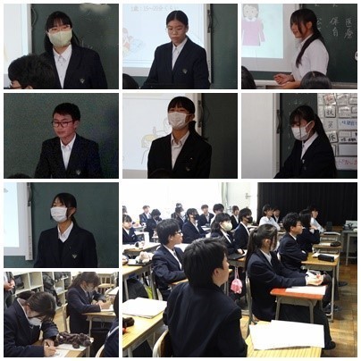 今日は、職場体験学習についての発表の第二弾で、各班の中で選ばれた代表者がクラス全員の前で発表をしました。
