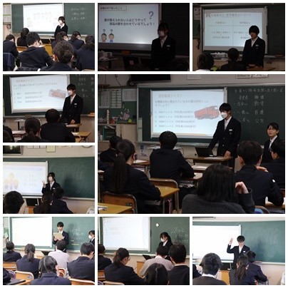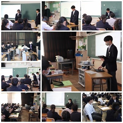 今日のGUタイムは、代表者の数名が職場体験のまとめを1年生に向けて発表しました。
