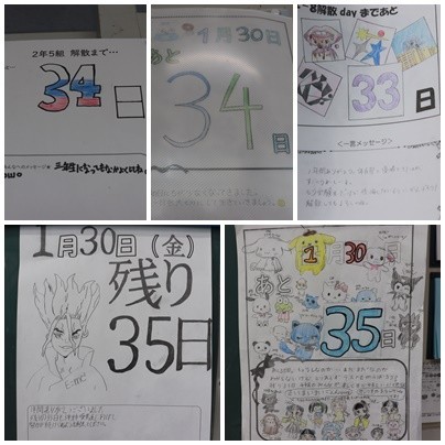 カレンダーのカウントの仕方は、クラスによって「最終日が0日」「最終日が1日」であったり「授業日のみ」であったりと若干の違いはありますが、2年生としてこのメンバーで過ごせる時間は、残りあと34日となりました。