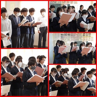 卒業式で歌う「群青」という曲は、東日本大震災後の福島県南相馬市立小高中学校で、避難を余儀なくされた生徒たちの「離れ離れになった友への思い」や「故郷への愛」を綴った言葉をもとに作られた絆の歌だそうです。