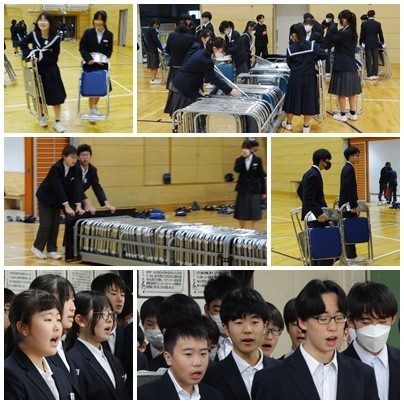 写真には、体育館と外の清掃担当のみんなが清掃の時間に行ってくれた椅子出しの様子も含まれています。