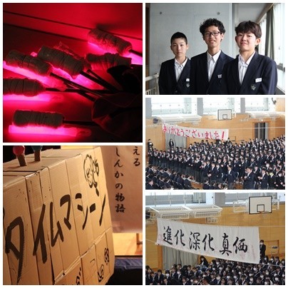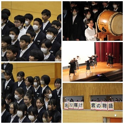 1年生は、お世話になった先輩方に向け、「思い出動画」「太鼓パフォーマンス」「有志によるダンス」「合唱」を贈りました。