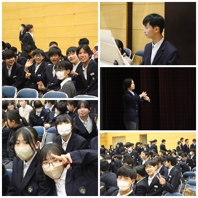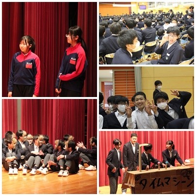 また、1・2年生合同の出し物では、生徒会役員、代議員、そして有志で集まったメンバーによる演劇と、1・2年生によるボディーパーカッション&合唱を贈りました。