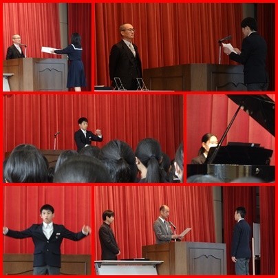 今日は、卒業式以外の式典をいくつか行いました。