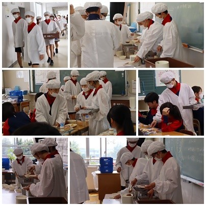 給食当番は、教室が3階になったことで運ぶ距離が遠くなりましたが、テキパキと動き、すばやく配膳を進められました。