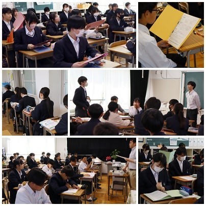 授業では、新しい問題集やファイルを受け取り、授業の内容や目標、評価についてなど真剣に話を聞きました。