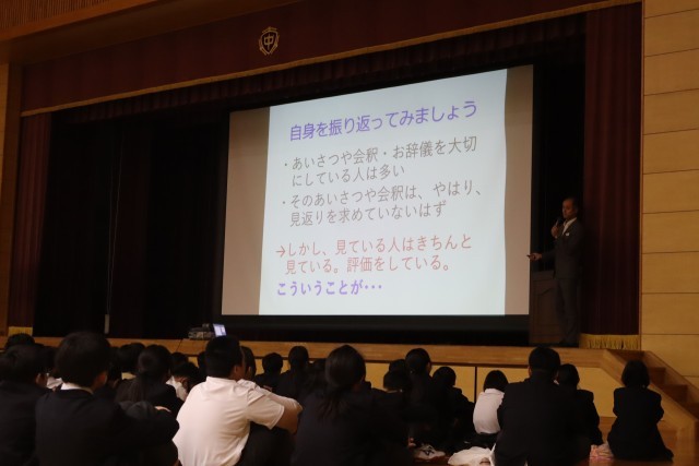 全校集会では、校長先生から「凡事徹底」についてお話がありました。
