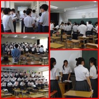修学旅行に向けての活動を進めています。今日は、企画・集会部からスローガンについてとキャンペーンの中間報告についてお話がありました。