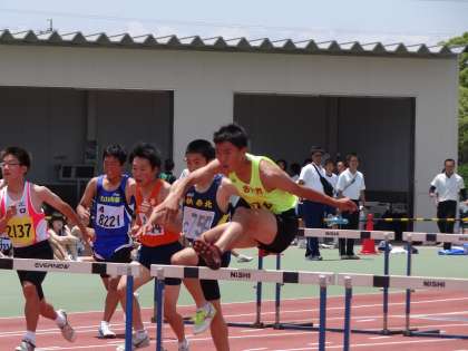 美しいフォーム。(丹羽君。110メートルハードル。16秒29)