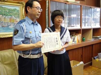 江南警察署長より、感謝状をいただきました。