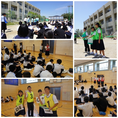 生徒会執行部が「学年の縦のつながりをもっともちたい」という思いを形にした試み、「ブロック制」がスタートしました。各学年を4つのブロックに分け、それぞれのブロックで活動をしていくものです。今日は、それぞれのブロックに分かれた後、リーダーやスローガンの紹介をして、これからの活動へ関心を高めていきました。23日(月)には、ブロックに分かれた大縄跳びを予定しています。