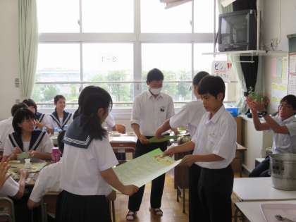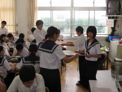 1年生では、お世話になる同じブロックの先輩方にメッセージを書き、クラス代表、学級書記が給食時間に渡しに行きました。