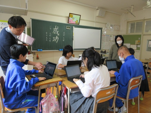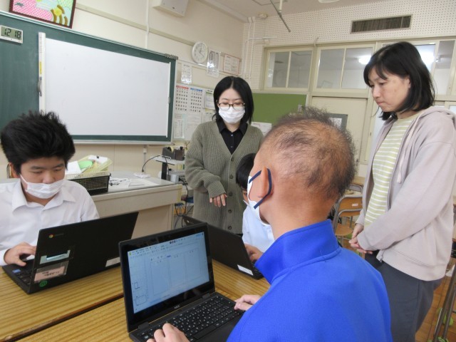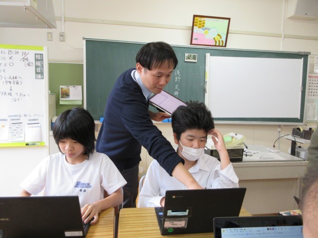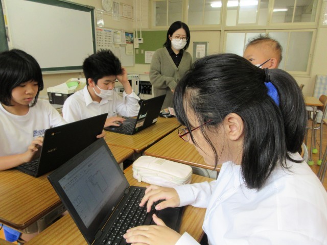 今日は45分授業で、12:10~12:40分の時間を使って、探究学習中間発表を行いました。自分が調査してきたこと、また取り組んできたこと、これから取り組んでみたいこと、調べてみたいことを発表しました。そのあと、疑問に思ったことをクロームブックに書きこんでもらい、共有しました。12月の最終発表にむけて、これからも各自の探究学習は続きます。