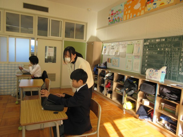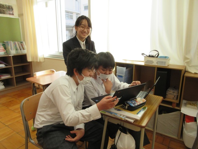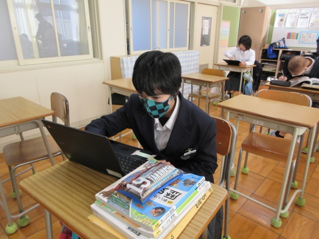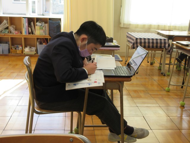 1枚目から5枚目は昼休みの様子です。来週は探究学習の発表があるので、それに向けてスライド作成を頑張っている生徒・面接に備えて準備している生徒・トランプでスピードをしている生徒などそれぞれに過ごしています。太陽の日差しが暖かく感じられました。