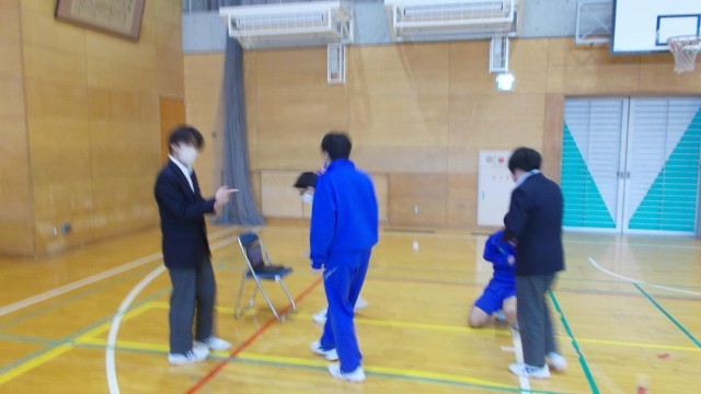 自分たちのグループの動きを撮り、礼のタイミングや歩幅、手の位置などグループ全員がぴったりそろうよう話し合って活動していました。