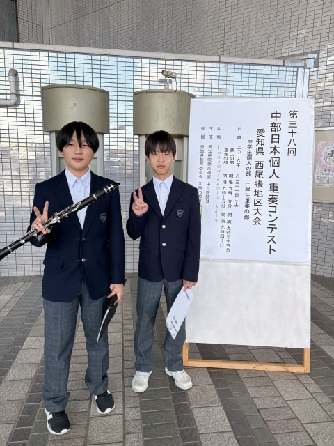 1月31日(土)Home&nicoホールにて個人・重奏コンテストがありました。布袋中からは個人の部でフルートとクラリネット、重奏の部で打楽器三重奏とクラリネット五重奏が出場しました。練習通りの演奏ができた生徒ばかりではありませんが、それぞれみんないい経験になりました。限られた練習時間でこれまでよく頑張りました。