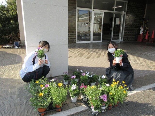 本日、江南市教育委員の後藤様よりお花が届きました。ありがとうございます。奉仕活動時に、2人の3年生に手伝ってもらい、各教室に花を配ってもらいました。ピンクの花はオステオスペルマム、黄色の花はディモルフォセカです。土の表面が乾いたら、お水をあげてください。大切に育てましょう。