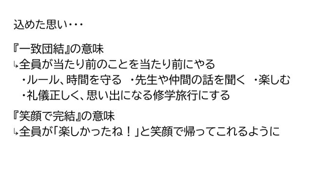 リモート画面の向こうで、修学旅行スローガン部の二人が力強く掲げてくれた修学旅行のテーマです。