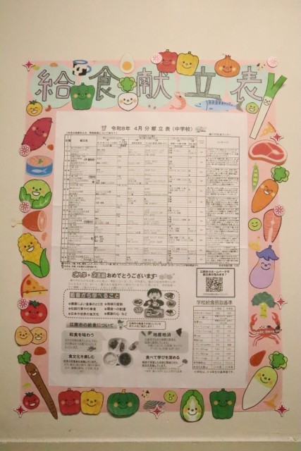各学年の配膳室前の献立表を有志の生徒のみなさんが素敵に飾ってくれました。