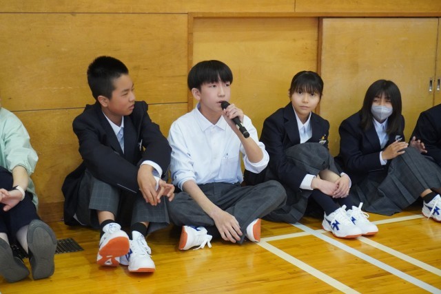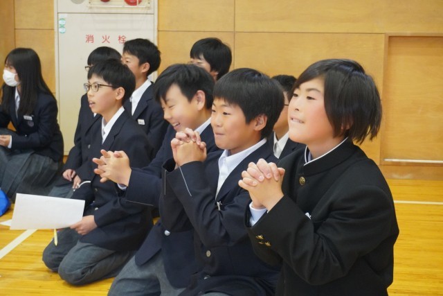 学年集会では、「ウソ・ホント」先生自己紹介の答え合わせを行いました。