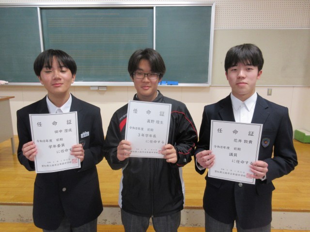 今日の任命式、各委員会の委員長に選ばれた3年生の顔はどこか誇らしげでした。