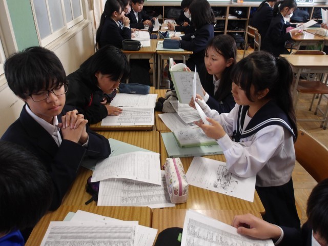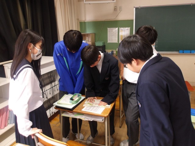 野外学習のオリエンテーリング計画を考えました。時間内に集合できるように、どこをどのような時間配分で巡るのか班で協力して話し合い、計画を立てました。