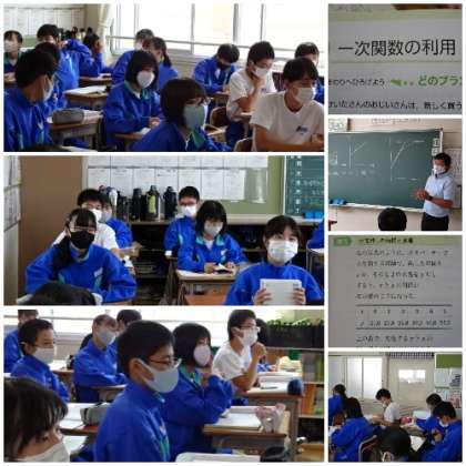 数学科は「一次関数の利用」の文章題をグラフに表しながら解いていきました。