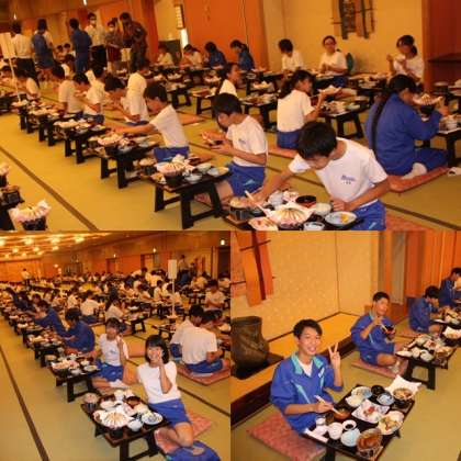 鳥羽らしく新鮮な刺身はもちろんのこと、中学生向けにハンバーグなども用意していただきました。