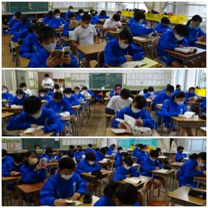 読書をしている学級、校外学習の思い出のアルバムを見ている学級、中間テストの素点表を返却している学級などさまざまです。