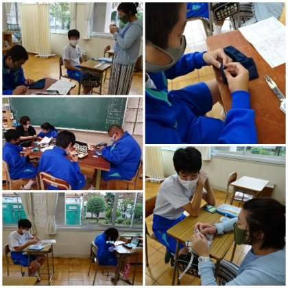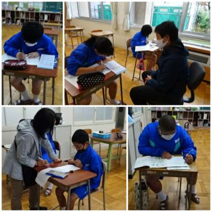 数学科は個々の学習課題を行い、家庭科は裁縫をしました。