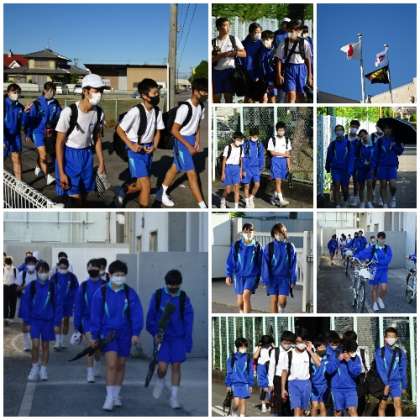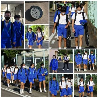秋晴れが戻ってきました。爽やかな風が吹いていて、日章旗、市旗、校章旗がなびいています。日中は夏日となるようです。