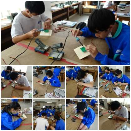スイッチと基板のはんだつけに挑戦している生徒が多いなと思います。