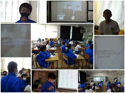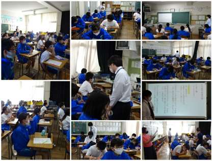 「みんなで跳んだ」という大縄跳びを題材にした実話を基に授業を行いました。動画を視聴後、グループでの話し合いを基に、生徒から多くの意見が出て、他者との関わりについて考えるよい機会となりました。