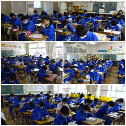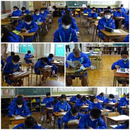 読書をしている生徒、数学科コンクールの勉強をしている生徒、学級によってまちまちです。