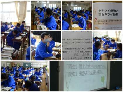 「動物のなかま」の学習で、「セキツイ動物のなかま」を5つのグループに分類できるようにすることを学習課題に設定しました。魚類、両生類、爬虫(ハチュウ)類、哺乳(ホニュウ)類の特徴について話し合いました。爬虫類や哺乳類は漢字で書くと意味が分かりやすいかなと思います。