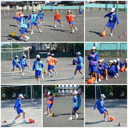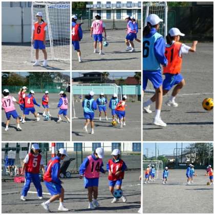 1年生の「球技」の学習は、運動場で「サッカー」、体育館で「バスケットボール」を行っています。