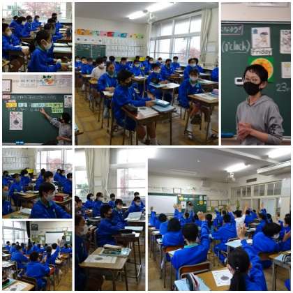 「Unit7 ブラジルから来たサッカーコーチ」の学習で、時刻を尋ねたり答えたりする内容です。What time is is? It is four(o'clock).午前、午後をはっきりさせたいときには、語尾にin the morning,in the afternoon,in the eveningなどをつけます。