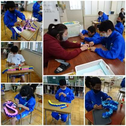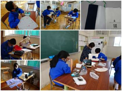 家庭科は「裁縫」の続きです。ブックカバーを完成させた生徒もいます。