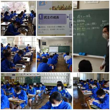 「武士の成長」の学習です。平安時代の中頃に登場した武士が次第に勢力を広げた過程を、地方や都での戦乱などからつかみました。