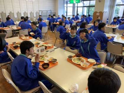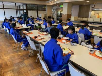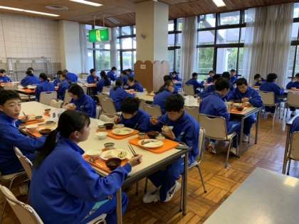 朝の集いの後は朝食です。前半と後半と分かれて食べます。