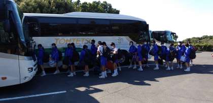 退所式を終えて、バスに移動します。