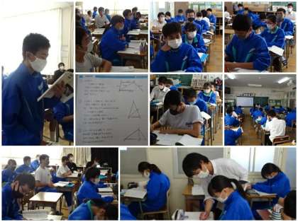 三角形の相似条件を使って図形の性質を証明する問題に取り組みました。
