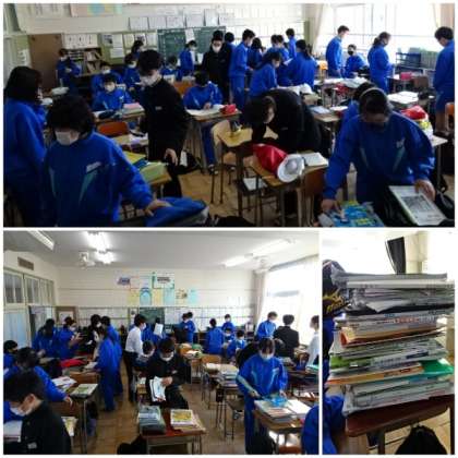テスト週間を機に、マイロッカーや班ロッカーに置いてある勉強具(いわゆる置き勉)の整理整頓を行いました。自分の持ち物にはしっかりと記名することが必要です。